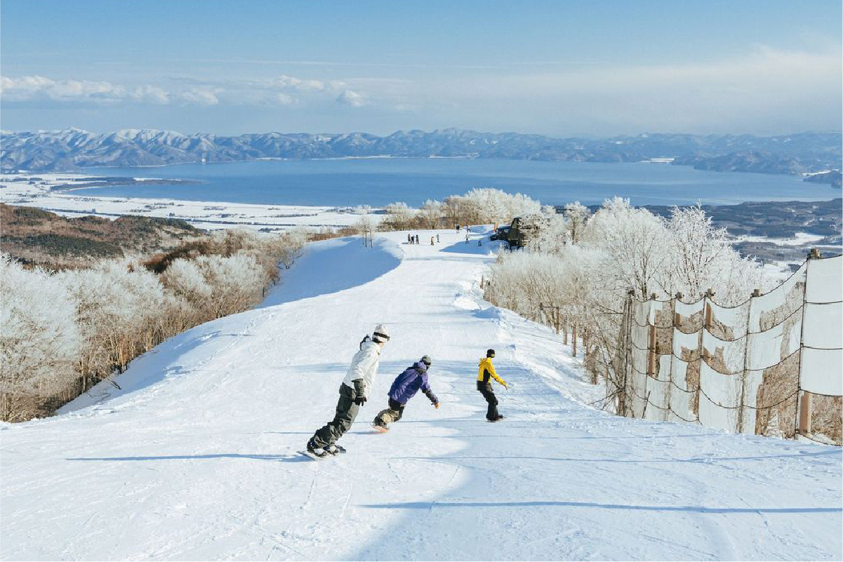 Take a taxi to Bandaimachi Station (booking required), then ride the train to Inawashiro Station. From there, continue on to EN RESORT Grandeco.