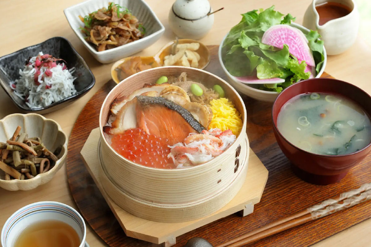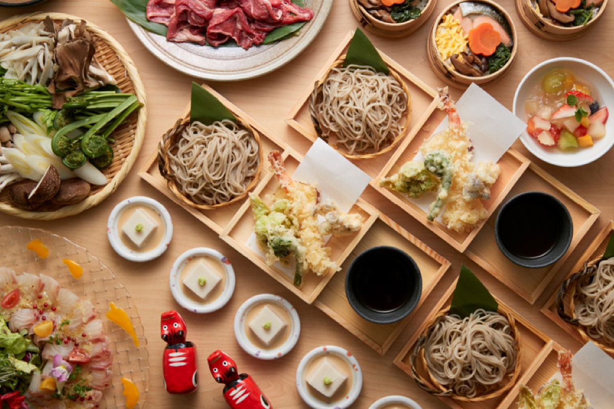 Savor a buffet of freshly prepared dishes highlighting regional specialties like Soba noodles and Kozuyu, along with miso and koji-based meals that celebrate Aizu’s rich fermentation culture.