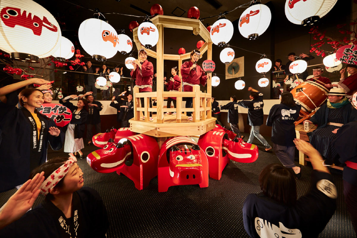 This special in-house activity translates to 'Let's dance together!' in the local dialect. Dance alongside hotel staff around a symbolic red cow and a traditional gate, all to the rhythm of folk songs that share the rich history and culture of Aizu.