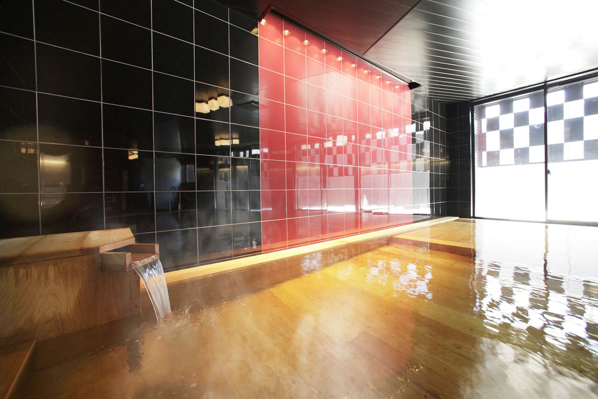 Unwind in natural hot spring waters flowing from Mount Bandai, surrounded by a bathhouse design inspired by Aizu’s traditional lacquerware craftsmanship.